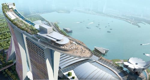 Na streche najdrahšieho hotela na svete – Marina Bay Sands, ktorého postavenie stálo 6 miliárd dolárov totiž nájdete bazén s dĺžkou troch tých olympijskych. Okrem toho aj vnútorné kanály, kasína, obchody, divadlá, kiná, či múzeum. A samozrejme hotelové izby. Ak by ste hotel chceli navštíviť – do kasína sa dostanete zadarmo, vyhliadka stojí 20 dolárov a jedna noc v izbe vás vyjde na cca 200 eur.